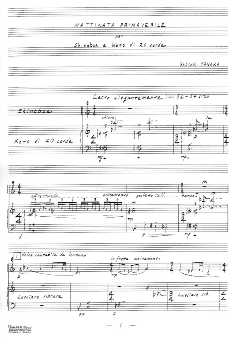 Premiered in June 2006 at Small Hall, Tiara Koto Performing Arts Center; Performed by SAKATA Ryôzan (shinobue) and KIMURA Reiko (nigûgen koto); single movement